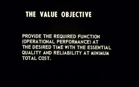 Various statements of Value objectives; 9 slides (Folder #: 219-227). They were taken by the Jet Engine Department and all were taken of materials used in 1964.