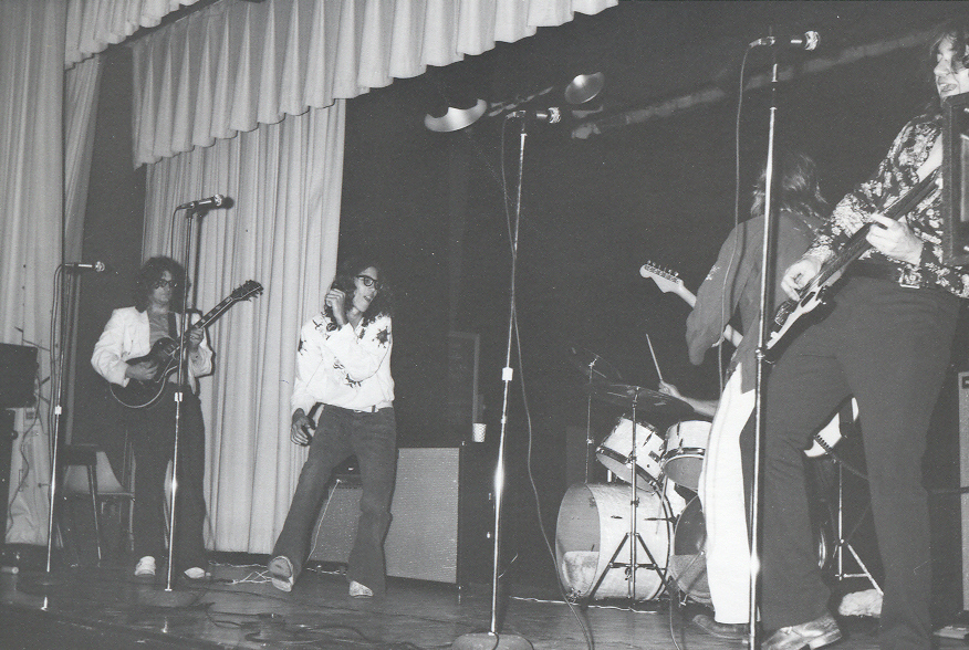 A rock-n-roll band in mid-song