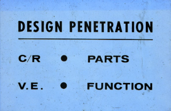 Cost reduction compared to V.E. Material was developed over a period of time from 1952 to 1964, but the slides were probably taken in 1964-65.